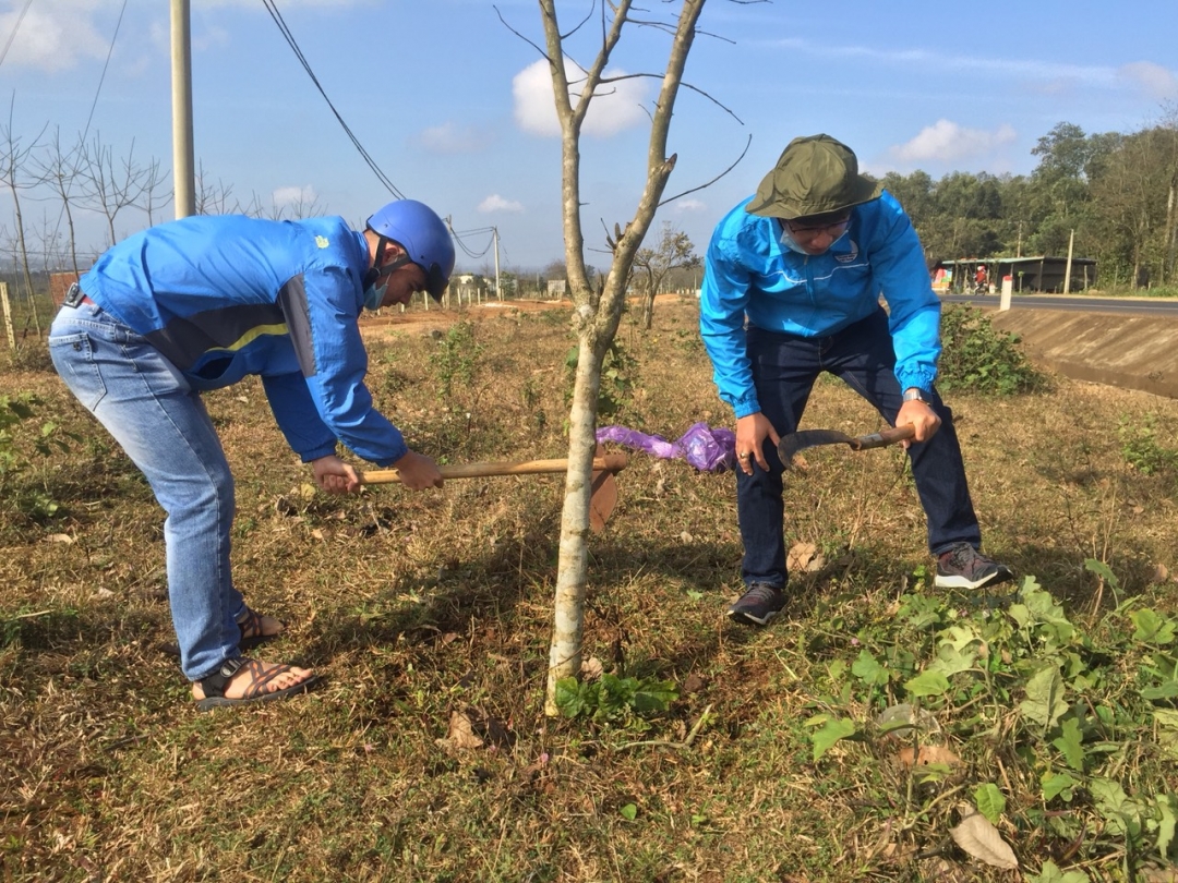Ngay sau chương trình khởi động, đoàn viên, thanh niên trên địa bàn thị xã đã ra quân làm vệ sinh môi trường hai bên tuyến đường Quốc lộ 14 đoạn qua đèo Hà Lan và đến thăm, tặng quà Mẹ Việt Nam Anh hùng Trần Thị Đố (xã Cư Bao).