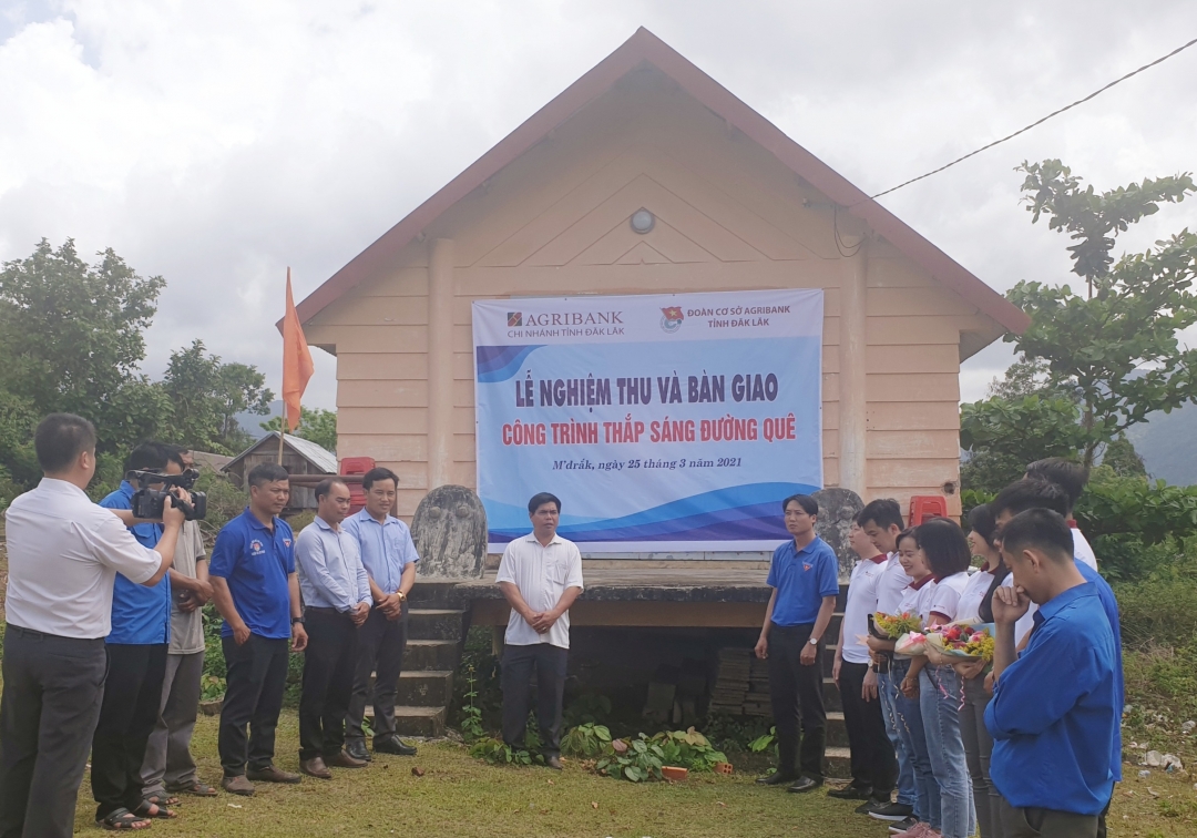 Trong không khí thi đua hưởng ứng "Tháng thanh niên năm 2021", chào mừng Kỷ niệm 90 năm thành lập Đoàn Thanh niên Cộng sản Hồ Chí Minh, (26-3-1931 - 26-3-2021) và chào mừng Kỷ niệm 33 năm ngày thành lập Agribank (26-3-1988 - 26-3-2021), tại Buôn Par, xã Cư Prao, Huyện M'Drắk, Đoàn cơ sở Agribank Đắk Lắk đã tổ chức lễ nghiệm thu, bàn giao công trình thanh niên “Thắp sáng đường quê”.