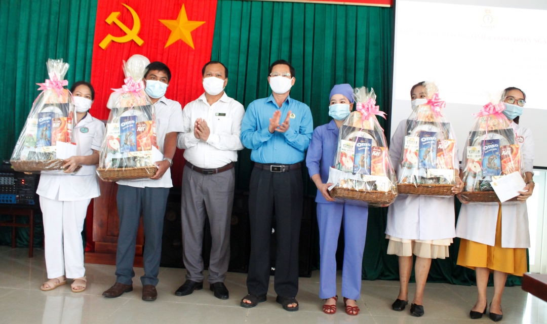 Thay mặt lãnh đạo LĐLĐ tỉnh, Chủ tịch LĐLĐ tỉnh Nguyễn Công Bảo đã ân cần thăm hỏi, động viên tinh thần, chia sẻ những khó khăn, vất vả mà các cán bộ, bác sĩ, nhân viên y tế đang đối mặt trong quá trình thực hiện nhiệm vụ; đồng thời khẳng định, nhân dân và công nhân viên chức lao động đang rất kỳ vọng ở cán bộ, nhân viên y tế sẽ cùng toàn Đảng, toàn dân và toàn quân sớm dập tắt dịch bệnh COVID-19...