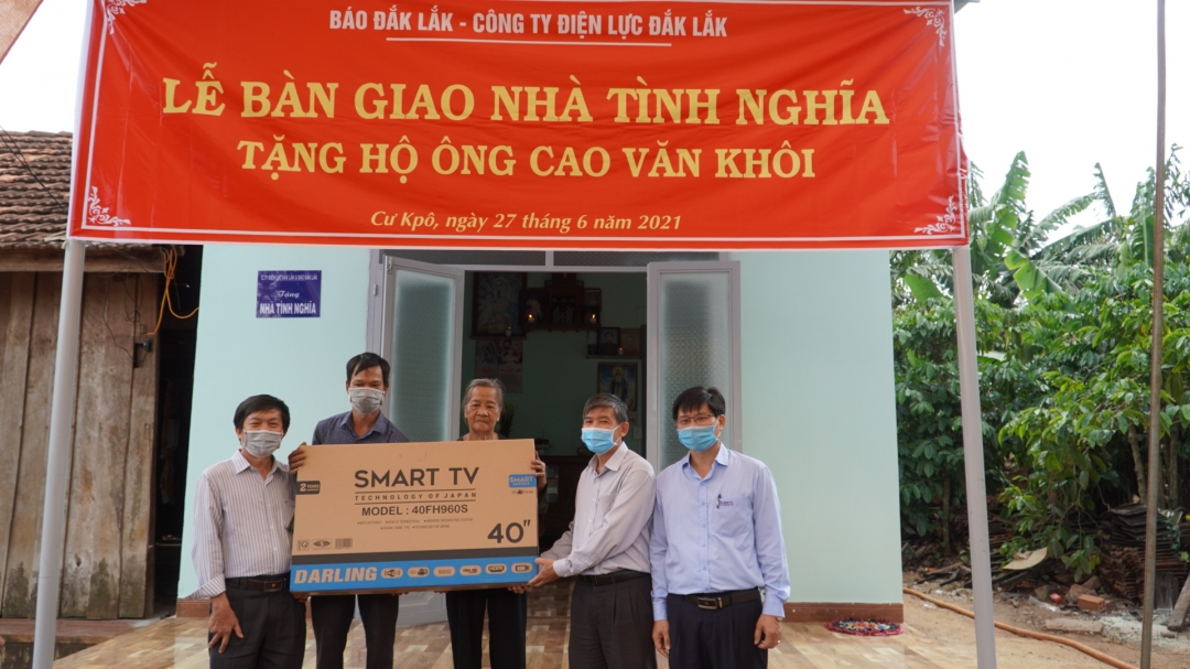 Sáng 27-6, Công ty Điện lực Đắk Lắk phối hợp với Báo Đắk Lắk tổ chức Lễ bàn giao nhà Tình nghĩa tặng gia đình ông Cao Văn Khôi (80 tuổi) trú tại thôn Bình Minh (xã Cư Kbô, huyện Krông Búk).