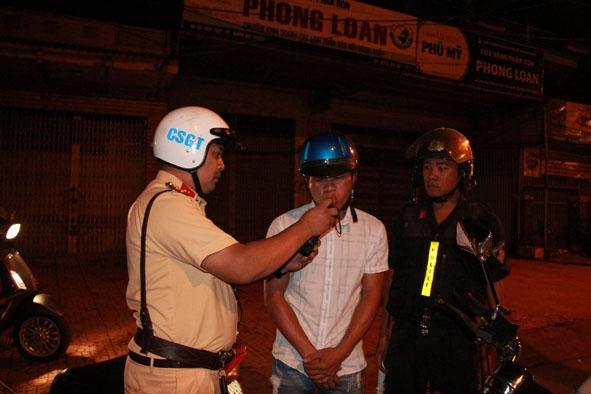 Cùng với việc triển khai Nghị định 46 và Kế hoạch số 234/KH–CAT-PV11-PC67, ngày 10-6-2016 của Giám đốc Công an tỉnh về Chuyên đề “Tuần tra kiểm soát và xử lý vi phạm nồng độ cồn đối với người điều khiển phương tiện”, lực lượng CSGT toàn tỉnh đã thực hiện khá quyết liệt và nghiêm túc việc kiểm tra nồng độ cồn đối với người tham gia giao thông. Theo đó, vào mỗi buổi tối từ 19 đến 22 giờ, lực lượng CSGT phối hợp với Cảnh sát cơ động tỉnh thường xuyên tuần tra kiểm soát trên tất cả các tuyến đường, địa bàn “nóng” về tình trạng thanh-thiếu niên uống rượu, bia gây mất an toàn giao thông. Ngoài công tác tuần tra kiểm soát, xử lý vi phạm, Phòng CSGT tỉnh còn phối hợp với Đội CSGT Công an 15 huyện, thị xã, thành phố tổ chức các buổi tọa đàm, phát tờ rơi tuyên truyền Luật Giao thông đường bộ, trong đó nhấn mạnh về hiểm họa rượu, bia nhằm giúp nâng cao ý thức người dân. Tính đến cuối tháng 7-2016, lực lượng CSGT đã tổ chức 18 buổi tọa đàm tại 99 thôn, buôn, thu hút 7.710 lượt người tham gia. Qua 2 tháng triển khai, lực lượng CSGT toàn tỉnh đã phát hiện và xử lý 6.258 trường hợp (103 ô tô, 6.155 mô tô) vi phạm về nồng độ cồn. Nhờ đó, tình hình trật tự an toàn giao thông trên địa bàn tỉnh đã có chuyển biến tích cực, TNGT đã giảm mạnh cả 3 tiêu chí…