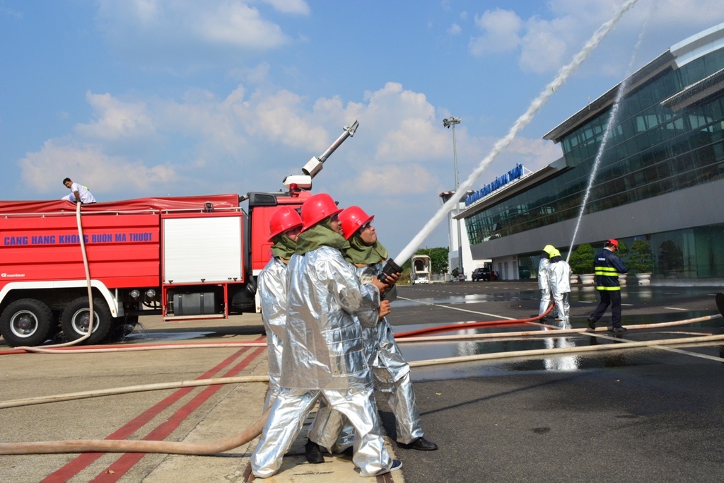 Thực tập phương án chữa cháy và cứu nạn cứu hộ Cảng Hàng không Buôn Ma Thuột
