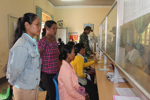 | Người dân đến công chứng giấy tờ tại UBND xã Yang Tao (huyện Lắk). |