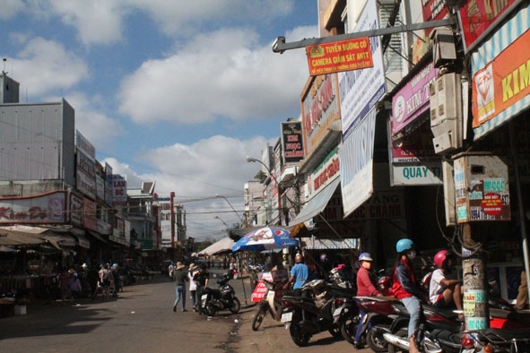 | Camera giám sát ở khu vực chợ thị xã Buôn Hồ. |