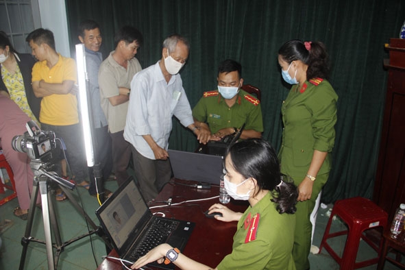 Việc cấp CCCD trên địa bàn huyện được tiến hành từ ngày 25-1. Để giúp công dân thuận tiện hơn, không phải mất nhiều thời gian đi lại, Công an huyện tổ chức làm thẻ CCCD lưu động tại UBND các xã, thị trấn. Theo đó, 3 tổ cấp lưu động tiến hành cấp CCCD tại 17/17 xã, thị trấn. Mỗi địa phương làm trong 2 - 3 ngày, khi hết công dân đến làm CCCD thì tổ công tác lại di chuyển đi nơi khác. Tại các điểm cấp thẻ CCCD, Công an xã, thị trấn phối hợp với Hội Liên hiệp Phụ nữ, Đoàn Thanh niên địa phương thống kê, lập danh sách, phát số thứ tự, đối chiếu thông tin, hướng dẫn thủ tục… cho người dân. Trong suốt thời gian tiến hành làm thủ tục cấp thẻ CCCD, lực lượng chức năng cũng thường xuyên tuyên truyền, nhắc nhở người dân thực hiện nghiêm các biện pháp phòng, chống dịch bệnh Covid-19.