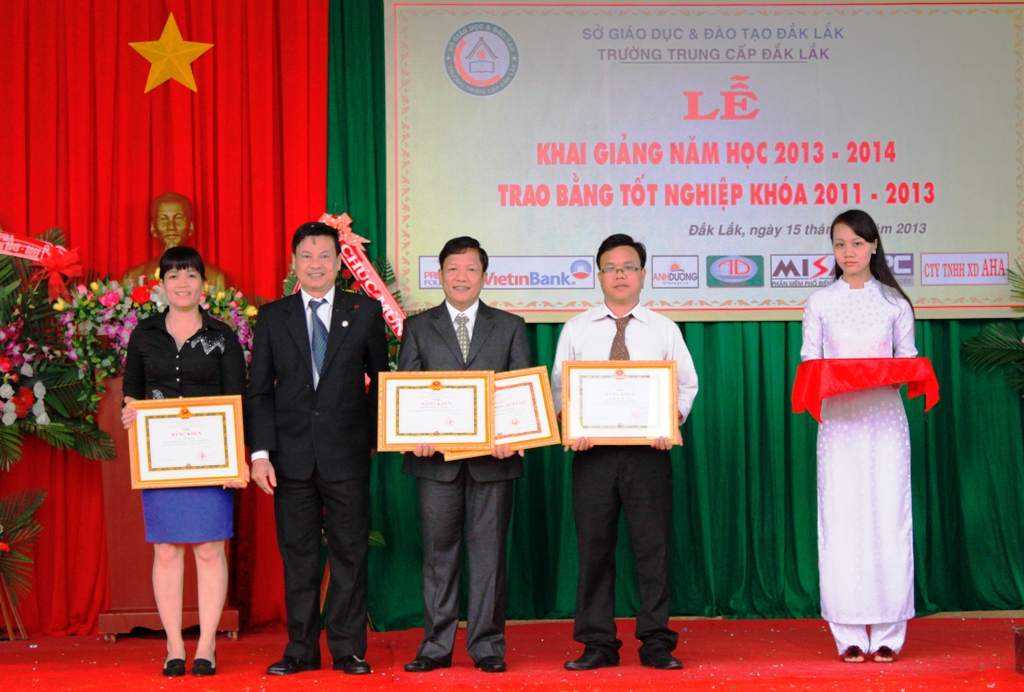 Sáng 15-11, Trường Trung cấp Dak Lak đã tổ chức Lễ khai giảng năm học mới 2013-2014 với sự tham dự của lãnh đạo Sở Giáo dục và Đào tạo, Công đoàn ngành Giáo dục tỉnh cùng đại diện các cơ quan, đơn vị, doanh nghiệp, các trường trung cấp chuyên nghiệp (TCCN).