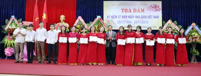 Tại buổi tọa đàm, nhà trường đã khen thưởng các tập thể, cá nhân cán bộ, giáo viên, nhân viên đạt thành tích xuất sắc trong các hoạt động chào mừng 20-11 năm nay.