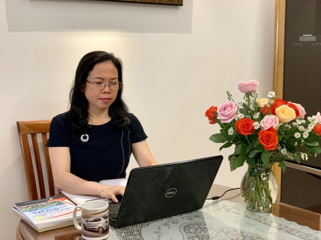 | Cô giáo Nguyễn Thị Nhân soạn giáo án. |