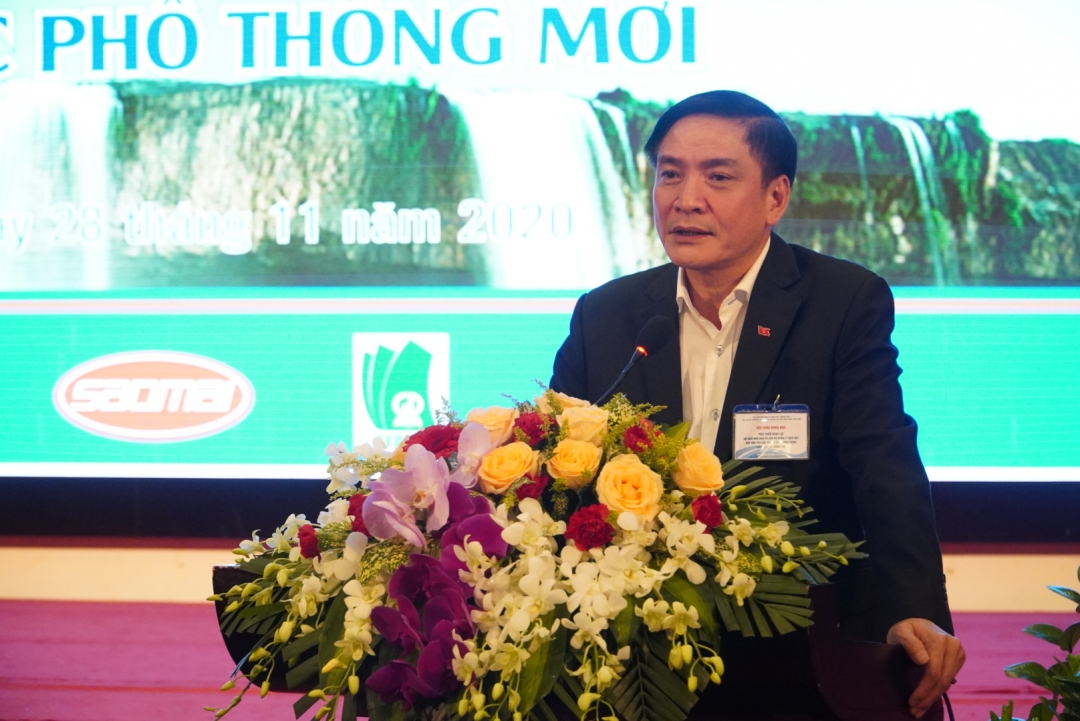 | Ủy viên Trung ương Đảng, Bí thư Tỉnh ủy Bùi Văn Cường phát biểu tại hội thảo. |