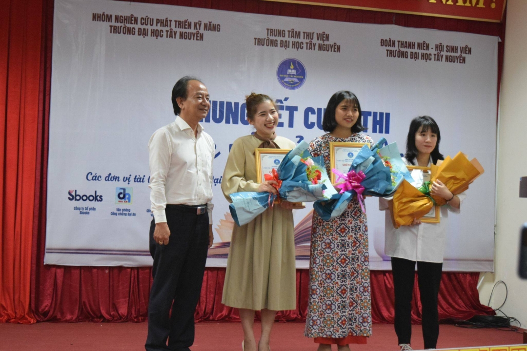 | Ban tổ chức trao giải cho các thí sinh có bài dự thi xuất sắc nhất. Ảnh: Thư viện Đại học Tây Nguyên cung cấp |