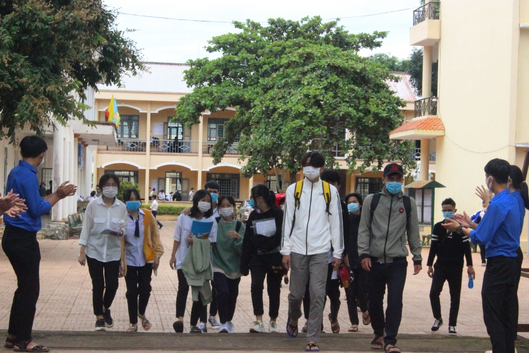 Riêng đối với những thí sinh phải thi vào đợt 2 do đang thực hiện cách ly tại nhà hoặc ở trong khu vực phong tỏa (10 em), tỉnh Đắk Lắk đã xây dựng phương án đưa các thí sinh tới những tỉnh, thành phố trong khu vực có tổ chức thi đợt 2 để các em dự thi và thời gian dự thi do Bộ GD-ĐT quyết định tùy thuộc vào diễn biến dịch COVID-19…