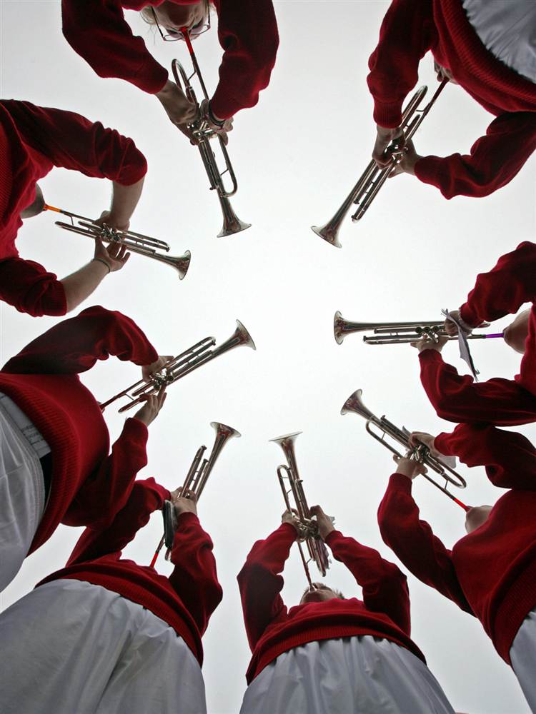 Thành viên ban nhạc Wisconsin biểu diễn trước trận đấu bầu dục cuối năm giữa hai đội Badgers và Oregon tại Santa Monica, California (Mỹ). (Ảnh: AP)