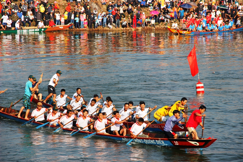 Đông đảo khán giả đến xem và cổ vũ cho các thuyền đua. |
