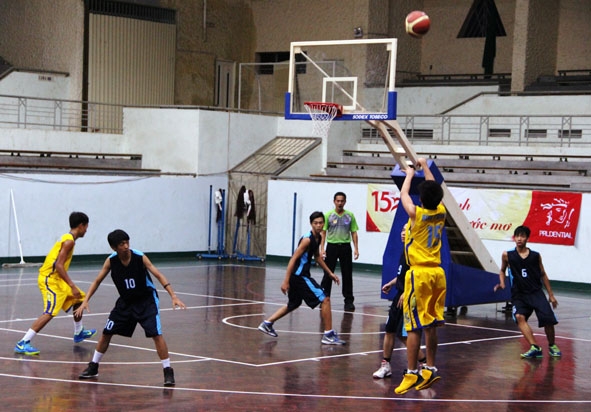Pha bóng trong trận đấu giữa Đắk Lắk (áo vàng) và Bình Phước trên sân Buôn Ma Thuột chiều 30-7. |
