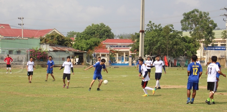 | Một trận đấu giữa đội bóng xã Bông Krang (áo xanh) và xã Nam Ka. |
