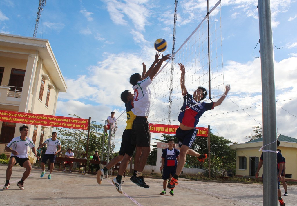 | Đội bóng chuyền Trường Đại học Tây Nguyên (áo đỏ) đoạt chức vô địch nội dung nữ. |