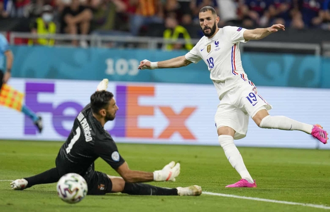 Sau bàn mở tỷ số này, trận đấu trở nên hấp dẫn hơn, Pháp nỗ lực dâng cao đội hình tìm kiếm bàn gỡ trong khi đó các cầu thủ Bồ Đào Nha tự tin, bình tĩnh hoá giải các pha tấn công. Những tưởng hiệp 1 khép lại với tỷ số 1-0 danh cho Bồ Đào Nha thì vào phút cuối cùng của hiệp 1, Mbappe đã đem về cho Pháp một quả phạt đền. Trên chấm penalty, tiền đạo Benzema dứt điểm thành công, đưa trận đấu trở lại vạch xuất phát.