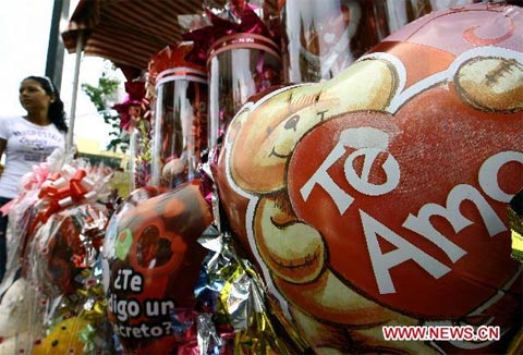 | Những chiếc kẹo hình trái tim xinh xắn cũng là một món hàng được ưa thích nhân ngày Valentine ở Panama City, thủ đô Panama. Ảnh: Xinhua |