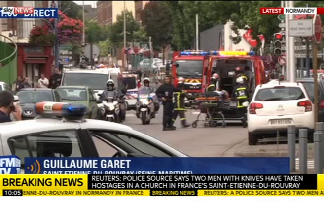Theo nguồn tin cảnh sát, vào khoảng 10 giờ sáng 26-7 (giờ địa phương) hai kẻ tấn công đã đột nhập từ phía sau một nhà thờ ở phố Saint Etienne-du Rouvray và mang theo dao để bắt cóc con tin vào thời điểm đang diễn ra buổi cầu nguyện. Hãng tin AFP cho biết, các con tin bị bắt cóc bao gồm một linh mục, một số nữ tu và tín đồ. Cảnh sát cho biết vị linh mục đã bị 2 kẻ tấn công sát hại, trong khi một người bị bắt cóc khác bị thương đang trong tình trạng nguy kịch.