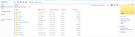 Skydrive là một dịch vụ miễn phí của Microsoft được sử dụng thông qua hộp thư điện tử hotmail hoặc live. Dung lượng lưu trữ lên đến 25GB. Hỗ trợ tiếng Việt. Có thể upload file bằng phương thức kéo và thả rất tiện lợi. Hỗ trợ soạn thảo văn bản trực tuyến bằng bộ Office của hãng.