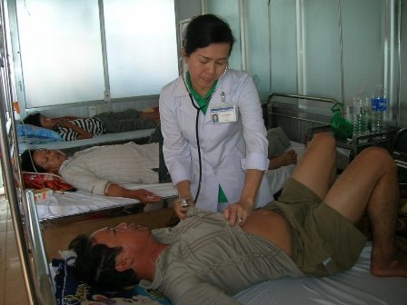 Đó là trường hợp bé N.T.T, 15 tuổi (trú tại khối 2, phường Ea Tam, TP. Buôn Ma Thuột) được chuyển đến khoa Nhi ngày 4-12 trong tình trạng sốt cao, mệt nhiều, huyết áp thấp, phù nề 2 mi mắt, xuất huyết kết mạc mắt 2 bên. Kết quả hội chẩn toàn viện thống nhất chẩn đoán bé T. bị suy hô hấp cấp – viêm phổi do vi rút bội nhiễm, tổn thương phổi diễn biến nhanh, nhiễm trùng huyết, bệnh nặng dần, bệnh nhân phải thở máy, nguy cơ tử vong cao. Sau 1 tuần được điều trị tích cực, đến ngày 10-12 tình trạng tổn thương phổi giảm nhiều, bé T. không còn phải thở bằng máy, tỉnh táo và có thể nói chuyện được. Được biết, trước khi nhập viện, bé T. đã bị sốt cao liên tục trong 6 ngày và được gia đình tự mua thuốc về điều trị tại nhà, đồng thời đưa đi truyền dịch tại một cơ sở y tế tư nhân, đến ngày thứ 6, khi thấy bệnh của bé không thuyên giảm, gia đình mới đưa vào viện.