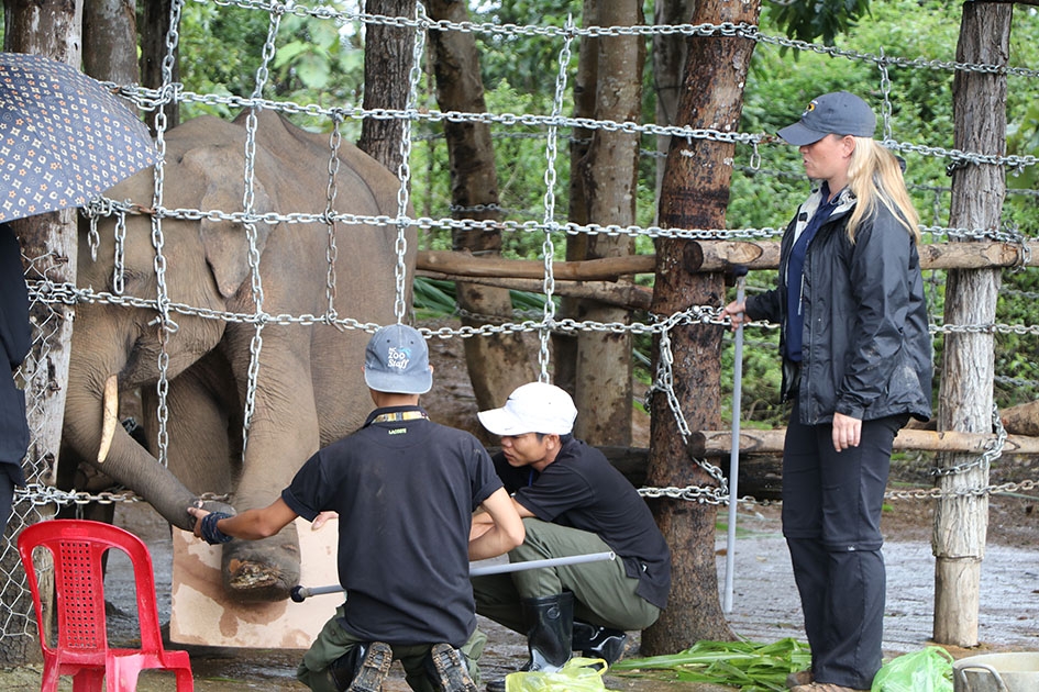 | Voi Jun bị vướng bẫy ở chân từ năm 2015 đến nay vẫn chưa lành hẳn. |