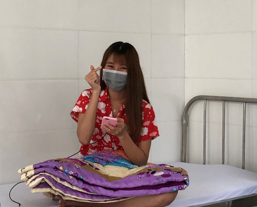 | Bệnh nhân số 448 luôn giữ tinh thần lạc quan "chiến đấu" với bệnh tật, đặc biệt em rất vui sau khi biết mình đã có kết quả lần 2 âm tính với Sars-CoV-2 |