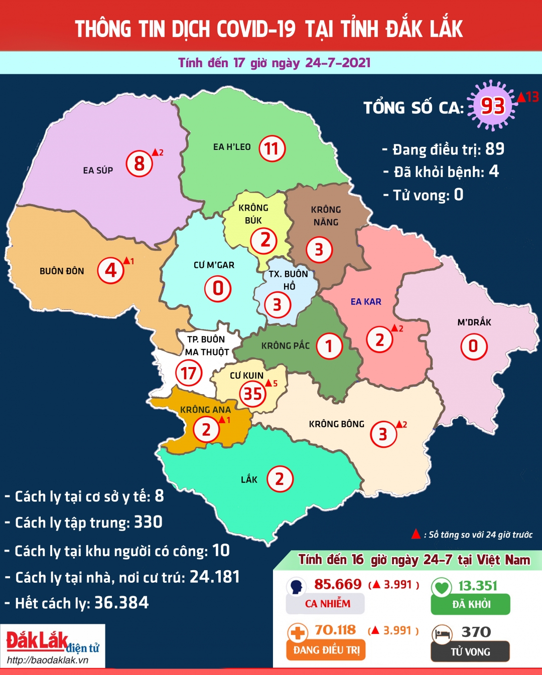 (Inforgraphic) Thông tin dịch COVID-19 tại tỉnh Đắk Lắk ngày 25-7-2021