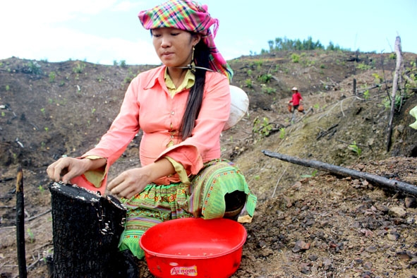 Tranh thủ buổi trưa, chị Nậm Thị Sinh (26 tuổi, dân tộc Hmông, thôn Ea Bra, xã Ea Trang, huyện M’Đrắk) mang chiếc chậu nhựa nhỏ rảo quanh các quả đồi, kiên nhẫn hái từng chiếc nấm bé tí trắng tinh bám quanh gốc cây keo lai, suốt buổi mới hái được hơn 2 lạng nấm tươi. Nhọc công hái nhưng bù lại, nấm mọc tự nhiên, sống nhờ sương gió và chất dinh dưỡng từ nhựa cây keo nên ăn rất ngon.