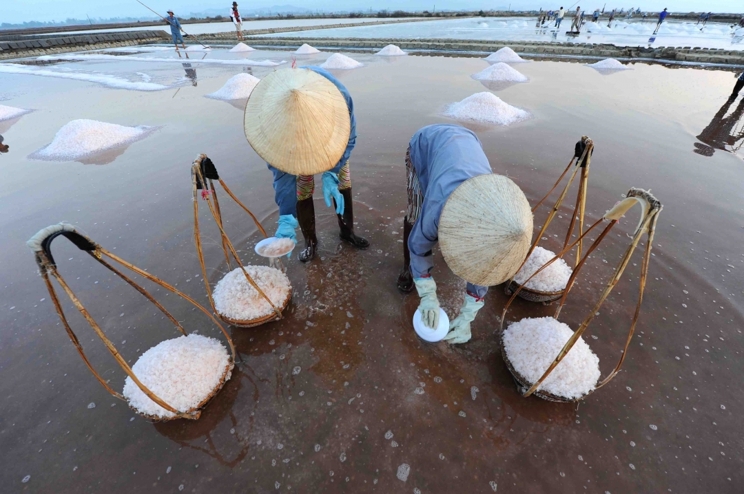 Nghề làm muối một năm chỉ làm được từ 5 - 6 tháng mùa nắng. Những người làm muối chỉ ước ao làm sao để những hạt muối họ làm ra được trả công xứng đáng với vị mặn mòi của giọt mồ hôi rơi trên cánh đồng muối.