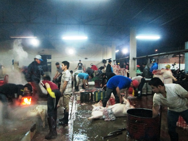 | Các lò giết mổ gia súc tập trung hoạt động sôi nổi thường từ 2 đến 5 giờ sáng hàng đêm |