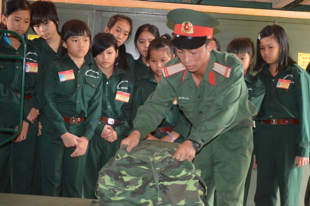 Lần đầu tiên xa nhà nên các “chiến sĩ nhí” tuổi đời từ 10-14 không khỏi bỡ ngỡ, lạ lẫm. Được sự quan tâm, yêu thương từ các anh chị điều phối viên, sự giúp đỡ tận tình của cán bộ, chiến sĩ Tiểu đoàn Bộ binh 9 (Trung đoàn Bộ binh 95), 48 học viên nhanh chóng hòa nhập vào môi trường mới. Như những người lính thực thụ, các em được hướng dẫn cách gấp nội vụ, huấn luyện điều lệnh, đội ngũ, 16 động tác võ của Quân đội nhân dân Việt Nam, các tư thế vận động trên chiến trường, cách sử dụng súng tiểu liên Ak…