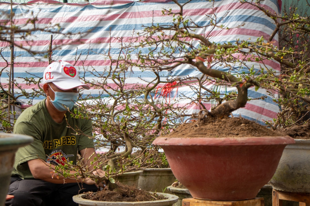 | Những chậu mai vàng được chăm chút chờ ngày bung lộc |