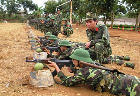 | Chiến sĩ mới Liên đội 37 luyện tập bắn súng. |