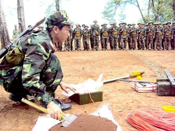| Huấn luyện kỹ thuật chiến đấu bộ binh cho tân binh tại Tiểu đoàn 303 (Trung đoàn Bộ binh 584). Ảnh: Đăng Triều |