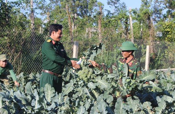 | Thu hoạch rau tại vườn tăng gia tập trung của Trung đoàn 95. |