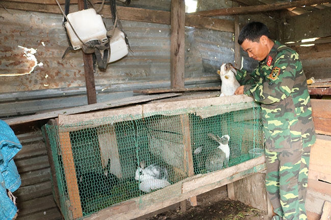 Từ Hà Nam vào Tây Nguyên với hai bàn tay trắng, nhờ chịu thương, chịu khó, biết tính toán làm ăn, sau hơn chục năm gắn bó với dải đất biên cương, đến nay gia đình Thượng úy quân nhân chuyên nghiệp Trịnh Văn Vấn, nhân viên thống kê Đội sản xuất nông lâm 3 đã có thu nhập khoảng 300 triệu đồng/năm, là điển hình trong lao động sản xuất để bà con trong vùng tìm đến tham quan, học tập. Chia sẻ về cách làm của mình, anh Vấn cho biết: “Để nói dân tin, làm dân theo, vợ chồng tôi tận dụng 2 ha đất được cấp trồng rau, trồng sắn, trồng cỏ rồi vay mượn thêm mua dê, bò, thỏ về nuôi. Lấy ngắn nuôi dài, dần dần tôi cũng có của ăn của để, mỗi năm cung cấp cho bà con hàng chục cặp dê, bò giống và hàng trăm cặp thỏ thịt”.