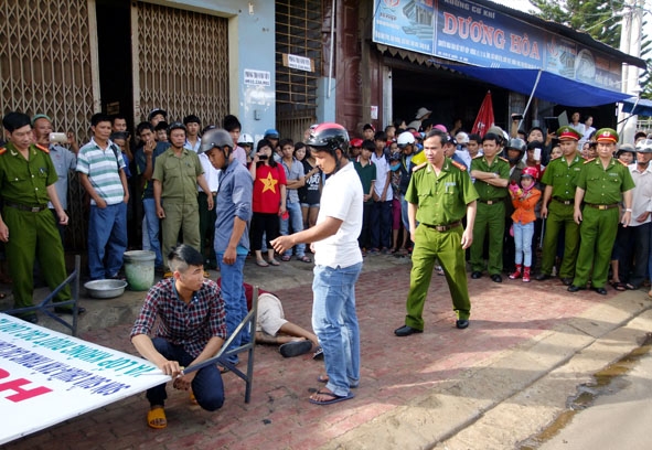 | Phòng Cảnh sát hình sự (Công an tỉnh) thực nghiệm hiện trường một vụ trọng án xảy ra trên địa bàn TP. Buôn Ma Thuột. |
