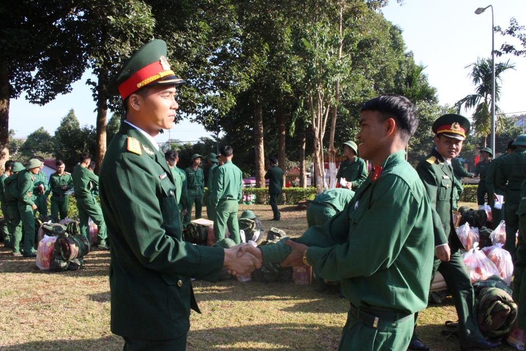 | Quân nhân lưu luyến chia tay, đồng thời gửi lời cám ơn đến chỉ huy Đại đội 2 (Ban CHQS huyện Ea Súp) trong thời gian tại ngũ |