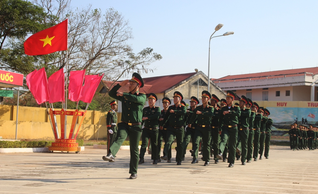 | Cán bộ, chiến sĩ Trung đoàn 584 tham gia duyệt đội ngũ tại lễ ra quân huấn luyện. Ảnh: N.Sơn |