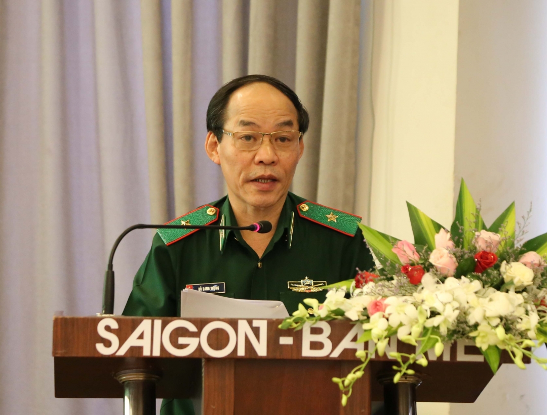 | Thiếu tướng Đỗ Danh Vượng, Chính ủy BĐBP, Phó trưởng Ban Thường trực Ban Chỉ đạo “Tăng cường PBGDPL cho cán bộ, nhân dân vùng biên giới, hải đảo giai đoạn 2017 - 2021” Bộ Quốc phòng phát biểu tại hội nghị. |