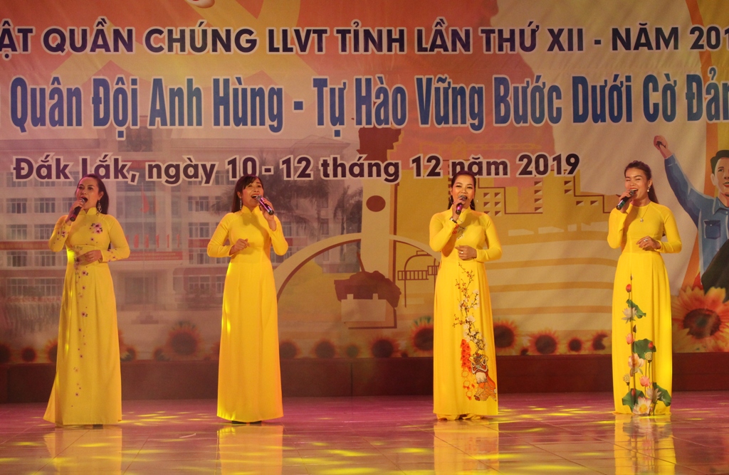| Tốp ca nữ "Như hoa hướng dương" của Đoàn nghệ thuật quần chúng Lực lượng vũ trang huyện Krông Pắc |
