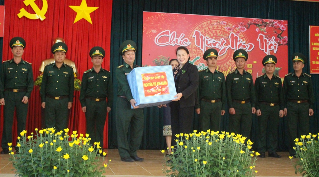 Chủ tịch Quốc hội Nguyễn Thị Kim Ngân thăm, tặng quà Tết Bộ đội Biên phòng tỉnh