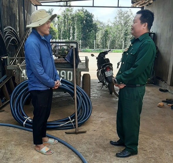 | Đại diện Ban Chỉ huy Quân sự xã Bình Thuận thăm hỏi gia đình thanh niên Trương Đình Hoài. |