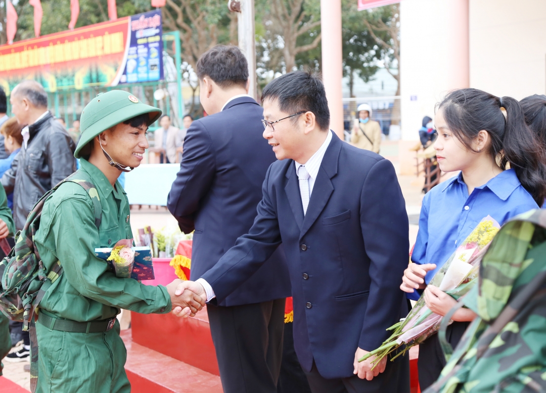 | Lãnh đạo huyện Krông Năng tiễn tân binh lên đường nhập ngũ năm 2020. (Ảnh minh họa). |