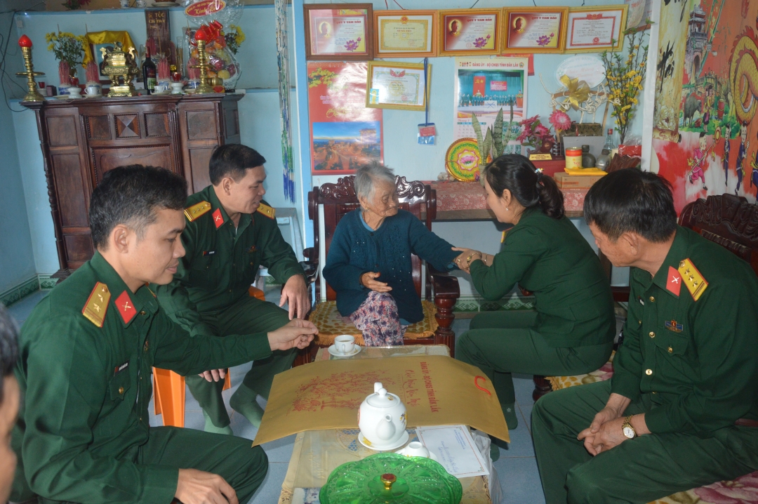 Thượng tá Trần Minh Trọng, Chính ủy Bộ Chỉ huy Quân sự tỉnh thăm hỏi và tặng quà gia đình đồng chí Lê Chí Quyết, nguyên Phó Bí thư Tỉnh ủy.