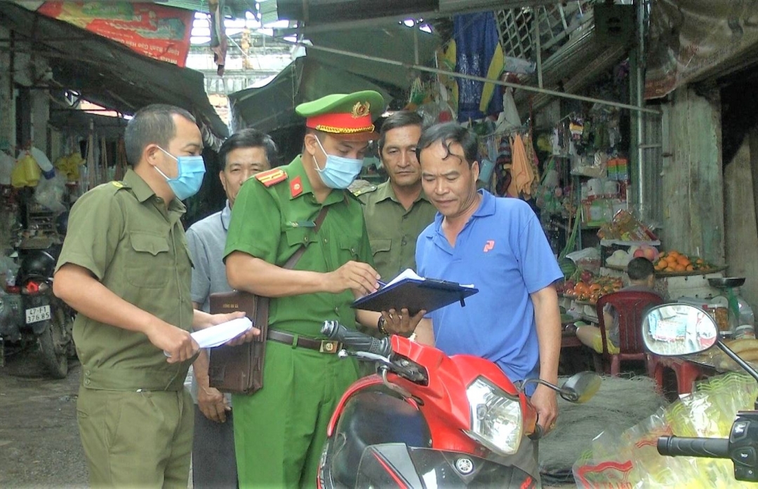| Lực lượng Công an xã Ea Đar (huyện Ea Kar) tuyên truyền nhân dân chấp hành các quy định của pháp luật và tăng cường bảo đảm các biện pháp phòng chống dịch bệnh COVID-19. |