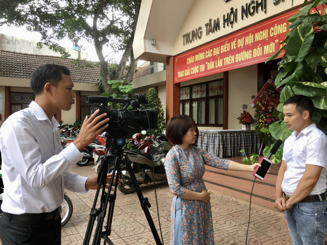 | Phóng viên Báo Đắk Lắk tác nghiệp tại Hội nghị gặp mặt cộng tác viên năm 2020. |