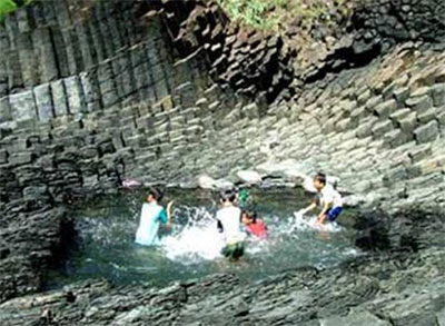2, chiều rộng 50m, chiều dài 200m. Nơi đây có cấu tạo tự nhiên hết sức kỳ lạ: Những cột đá hình ngũ giác, lục giác dựng đứng thành từng cột khít nhau, đều tăm tắp như có đôi tay khổng lồ nào đó sắp đặt.