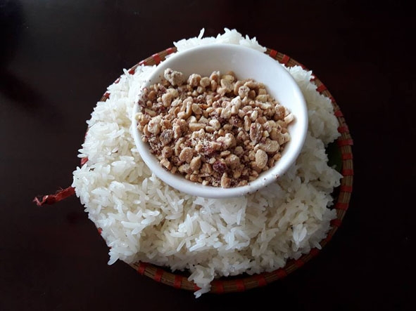 | Người dân thôn 3 làm lễ cúng cơm mới. |